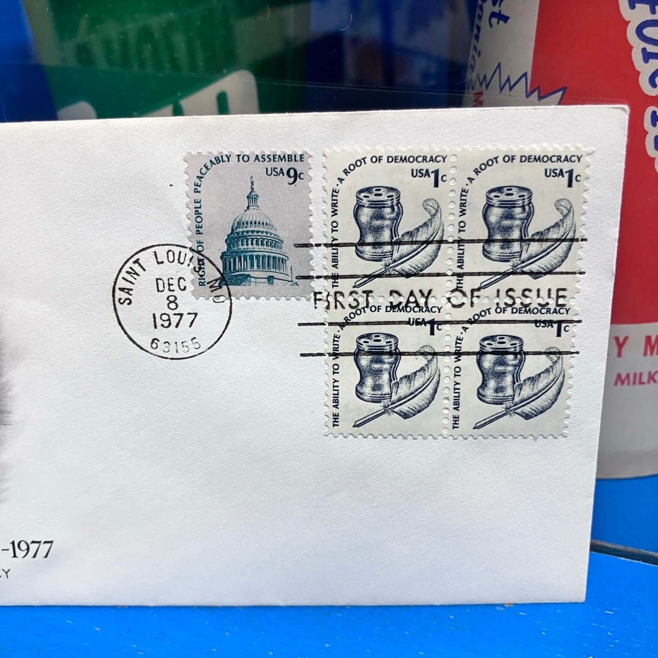消印はSAINT LOUIS(セントルイス)の郵便局で1977年12月8日に押印されています。