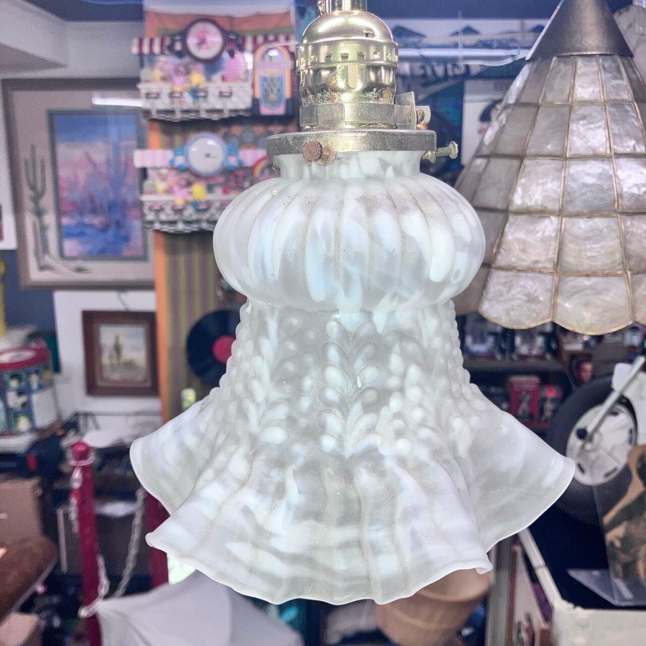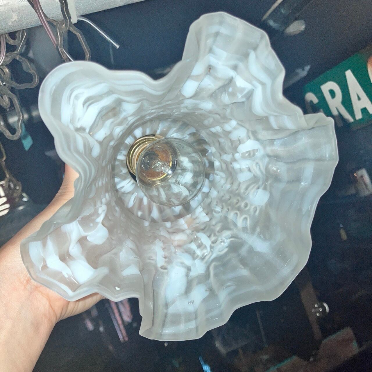 繊細な花模様が施されたガラスシェードは、灯りを柔らかく拡散し、落ち着いた雰囲気を演出します。ダイニングやリビングルーム、スタディスペースなどでその魅力を存分に発揮し、特別な時間を彩ることでしょう。