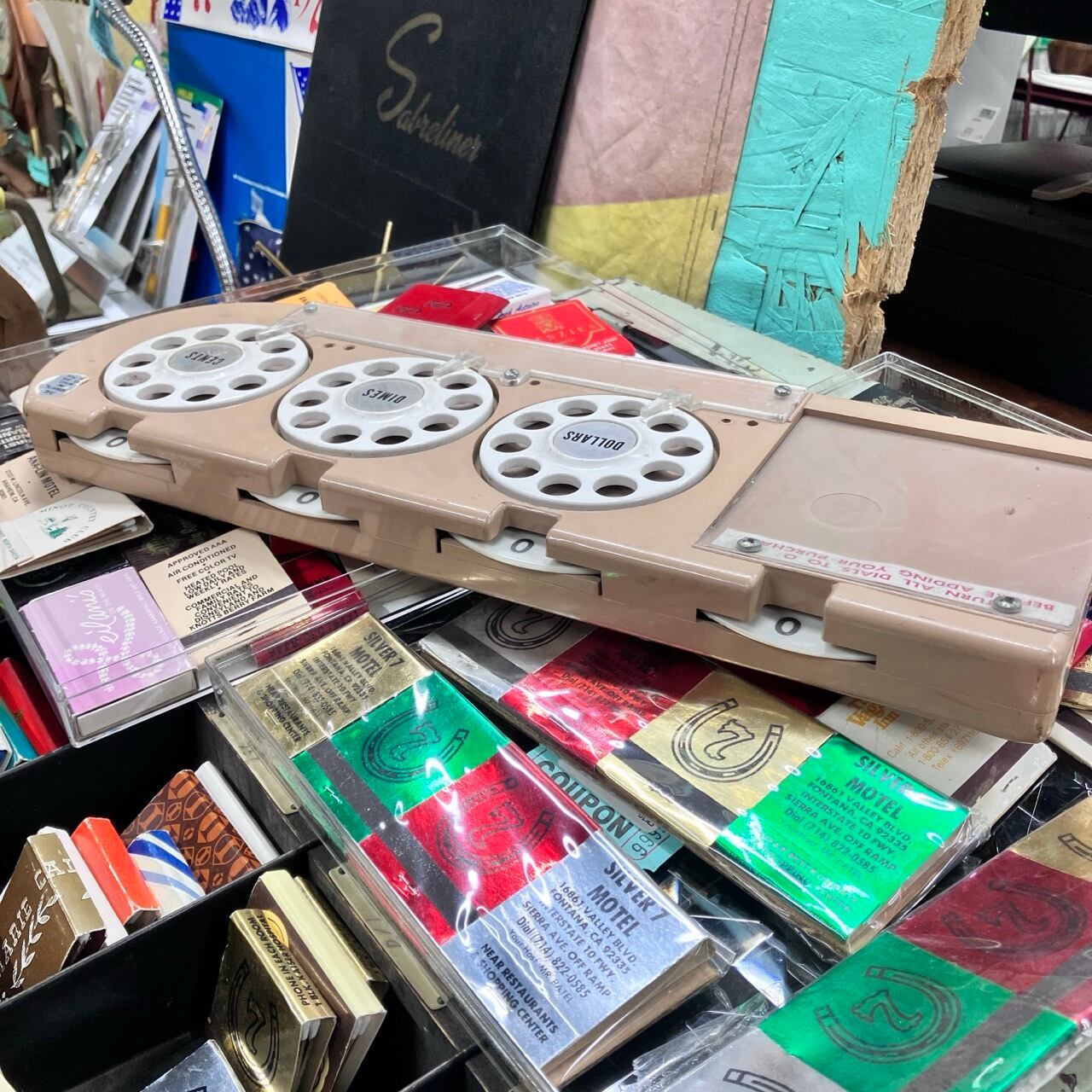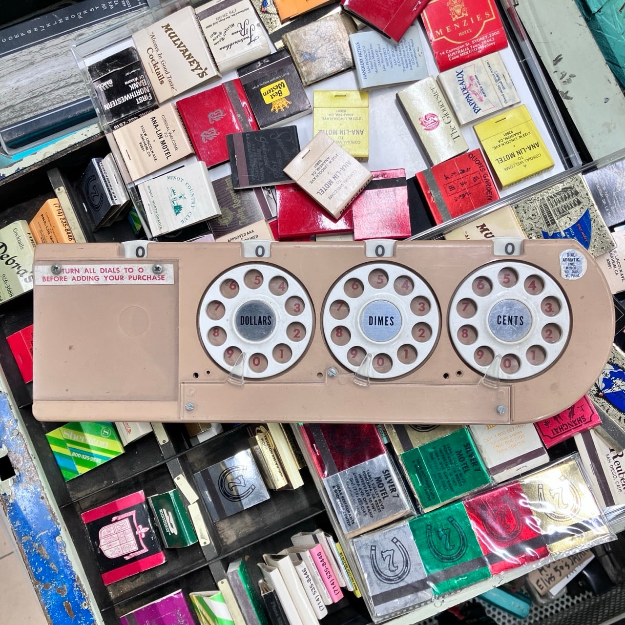1964年にサミュエル・リーフブランドによって発明された”ヴィンテージ ダイヤル式 ショッピングカート 加算機”です。