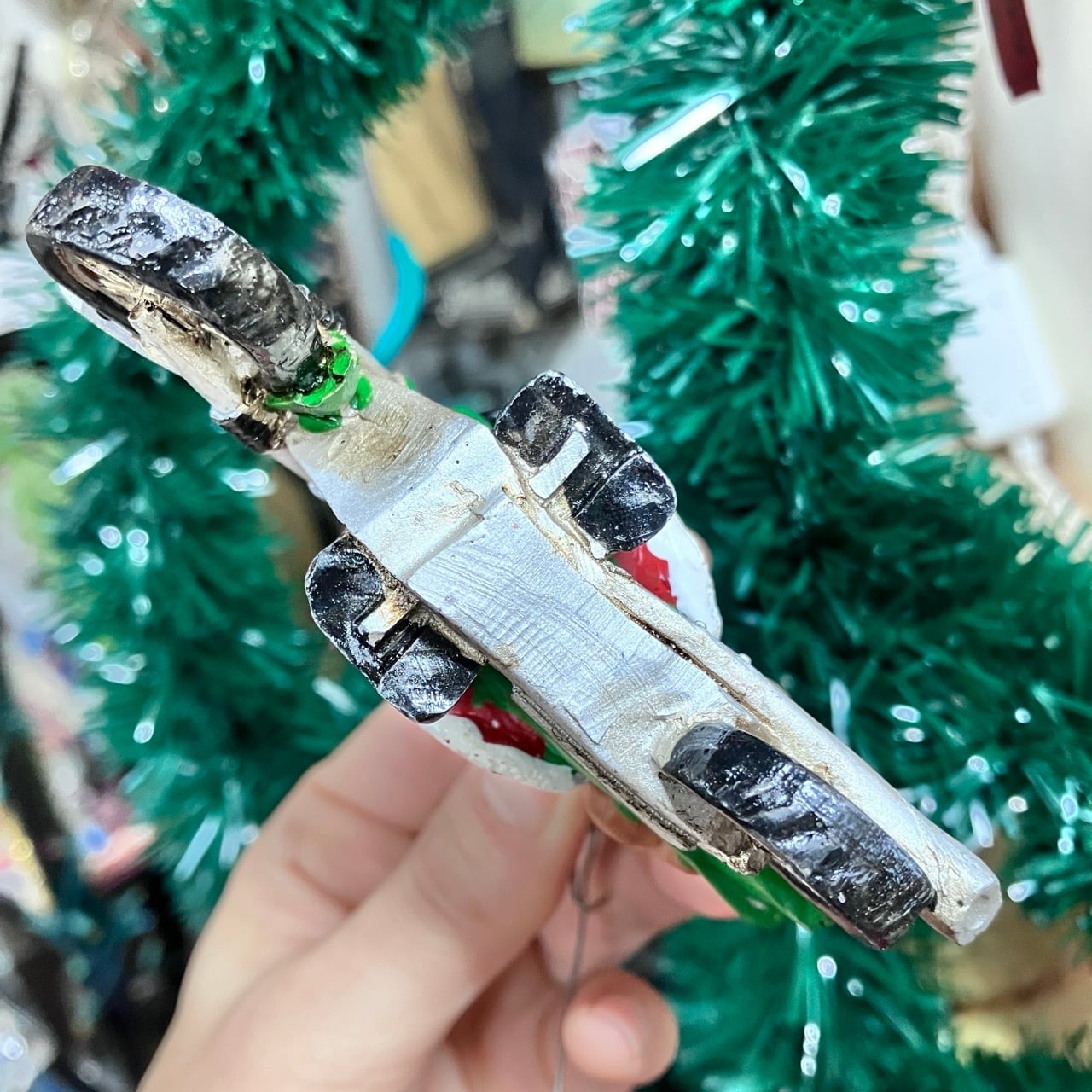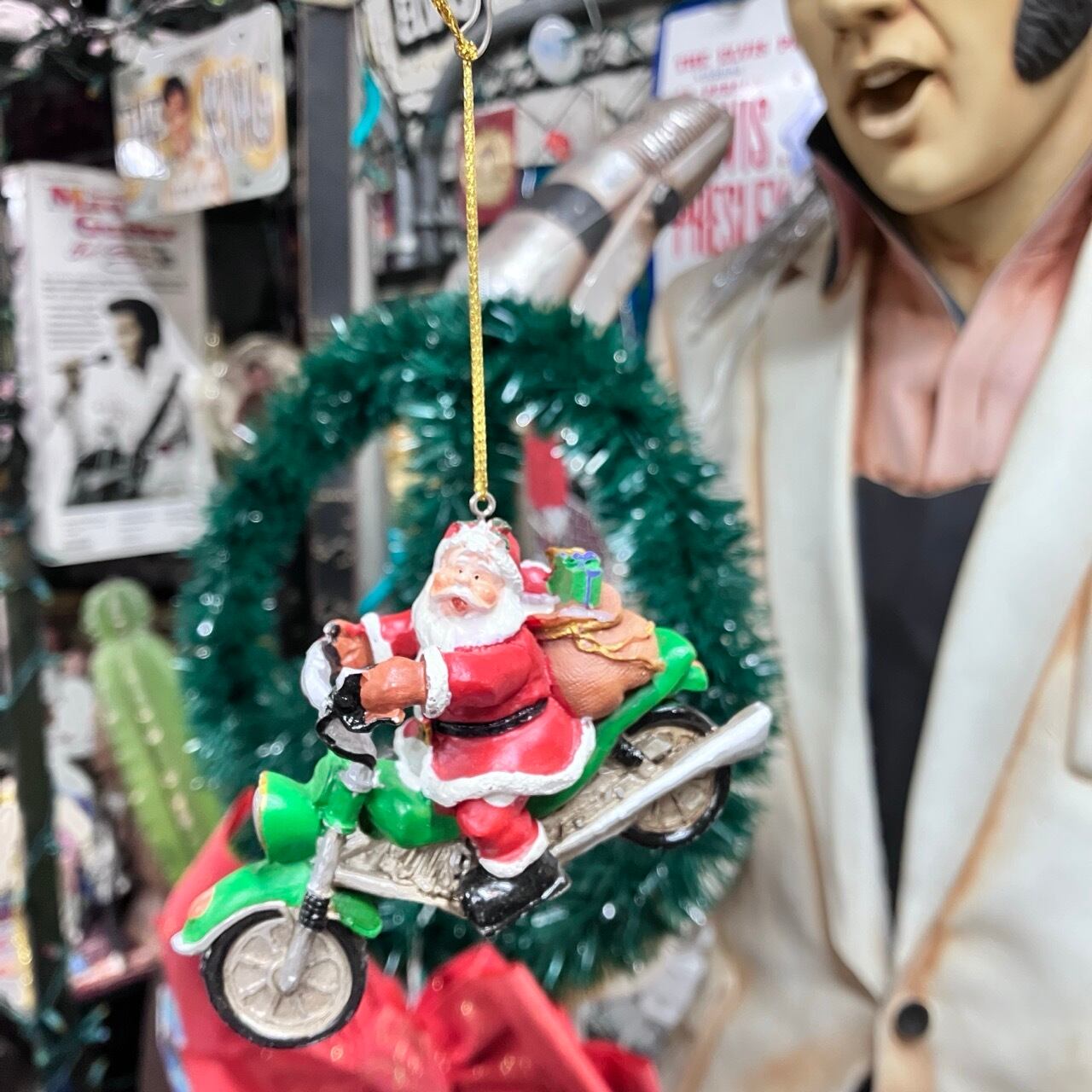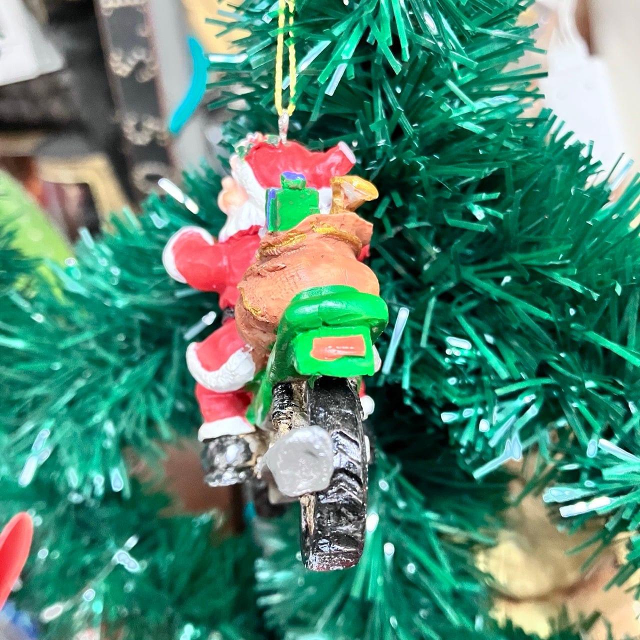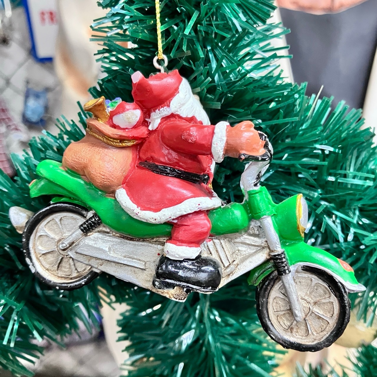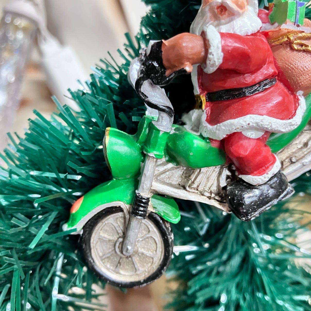 こちらは、クリスマスをより楽しく盛り上げるオーナメント、オートバイとサンタとプレゼントです。