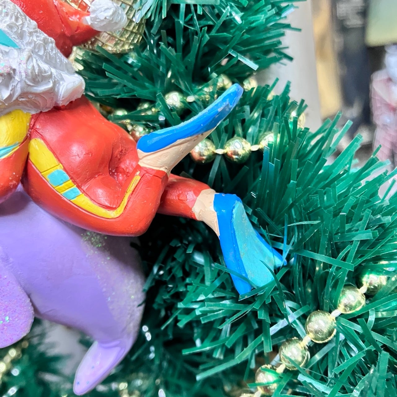 こちらは、首輪をつけたマナティとその首輪をつかんでシュノーケリングしているサンタのオーナメントになります。